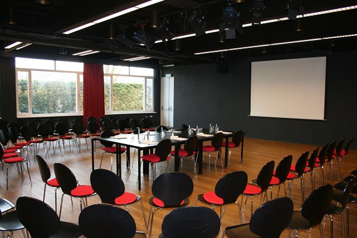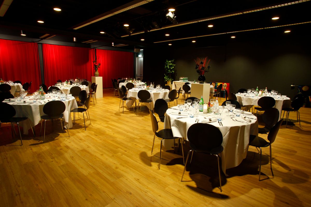 Onze Kleine Zaal is een 'vlakkevloer' zaal en daarom bij uitstek geschikt als je een flexibele ruimte zoekt voor uiteenlopende doeleinden en bijbehorende opstellingen. Van vergader- tot lezing- tot dineropstelling en van kleine beursruimte tot bedrijfsfeest; alles is mogelijk. Deze ruimte leent zich ook perfect voor een optreden, kleine toneelvoorstelling of musical. Met onze technische faciliteiten kunnen wij jouw activiteit ondersteunen en er gezamenlijk een succes van maken. De maximale capaciteit van deze zaal is 100 personen.