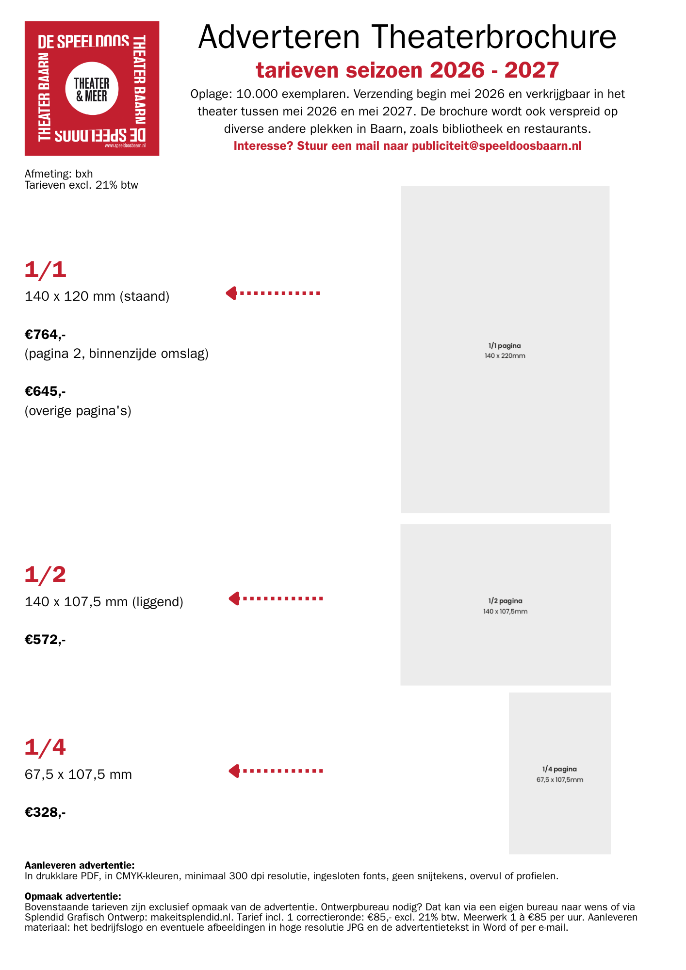Het is ook mogelijk om te adverteren in de theaterbrochure van Theater de Speeldoos.